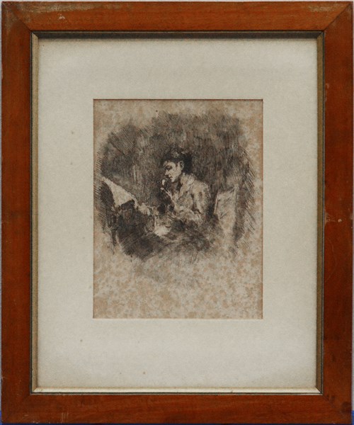 "Figura femminile di profilo" puntasecca (cm 36x29,5) in cornice