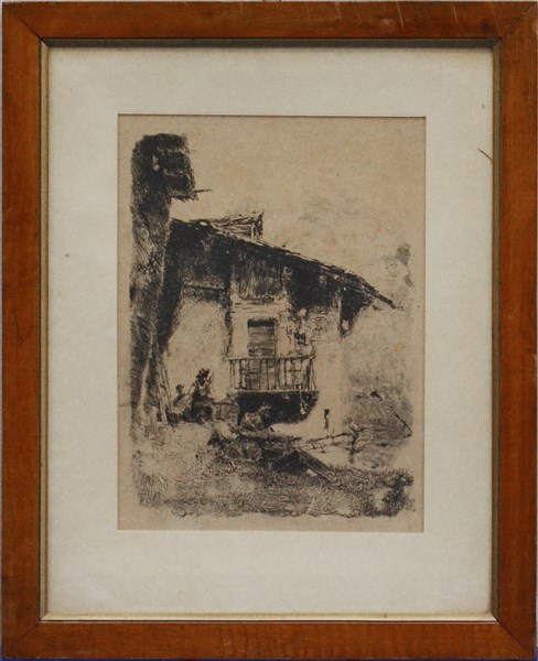 Uberto Dell' Orto "Baita in montagna" puntasecca (cm 46x36) in cornice (difetti