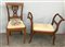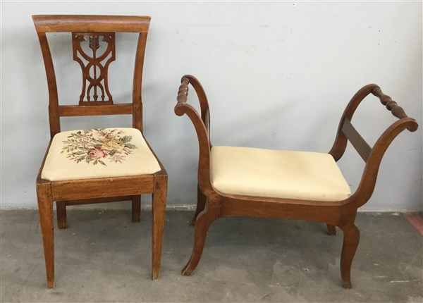 Lotto composto da un panchetto con braccioli estroflessi e una sedia con cartel