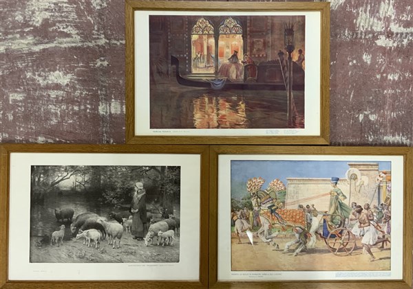 Lotto di undici cornici contenenti riproduzioni (difetti)
