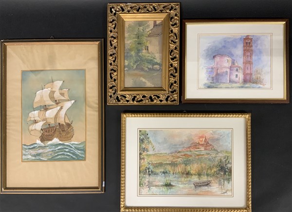 Lotto 654 | Lotto di quattro acquarelli di autori, soggetti e misure diverse, in cornici (d