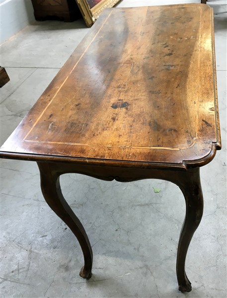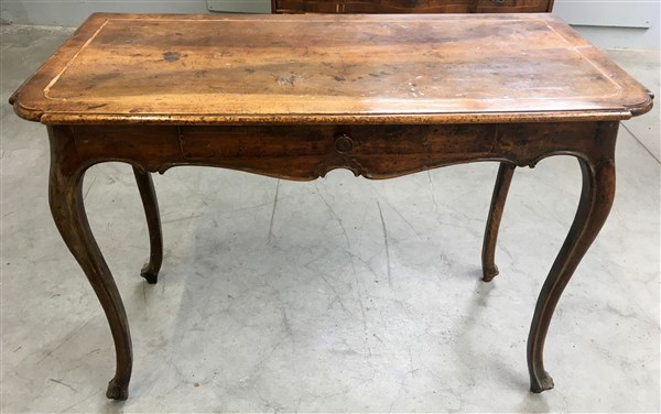 Consolle di forma mossa in noce con cassetto sottopiano, piano filettato, gambe e fasce sagomate. Veneto, secolo XVIII (cm 113x78,5x54) (difetti)