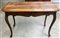 Consolle di forma mossa in noce con cassetto sottopiano, piano filettato, gambe