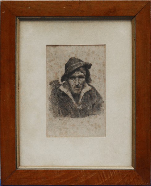 "Vecchio con cappello" puntasecca (cm 28x22,5) in cornice