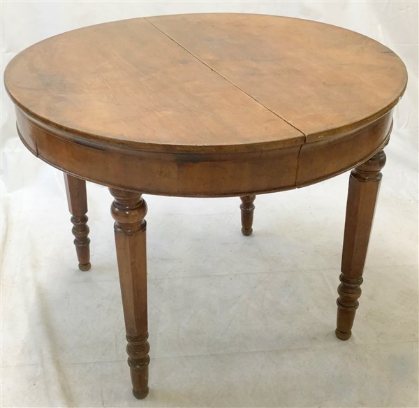 Tavolo con piano tondo allungabile, gambe sfaccettate e parzialmente tornite, secolo XIX (d cm 98x h cm 78) (difetti e restauri)