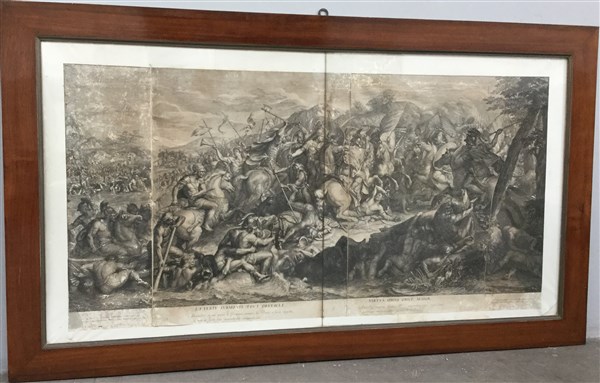 Jean Adran, da Charles Le Brun "La Vertu surmonte tout obstacle. Virtus omni obice major" acquaforte, in cornice (gravi difetti)