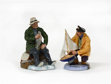 Manifattura di royal Doulton, lotto di due figure in porcellana policroma raffiguranti pescatore e marinaio (h max cm 20)