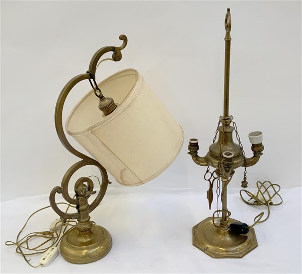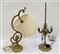 Lotto composto da cinque lampade da tavolo in metallo dorato e ferro battuto di misure diverse (difetti)