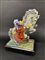 Gruppo in ceramica decorata a lustro raffigurante cavallo con palafreniere, bas