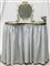 Toilette habillèe in ottone di gusto Liberty, piano decorato da stoffa ricamata