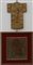 Lotto composto da una placca in bronzo raffigurante San Giovanni Battista (cm 15,7x14,5) in cornice e un Crocifisso in lamina di metallo (h. cm 19,5)