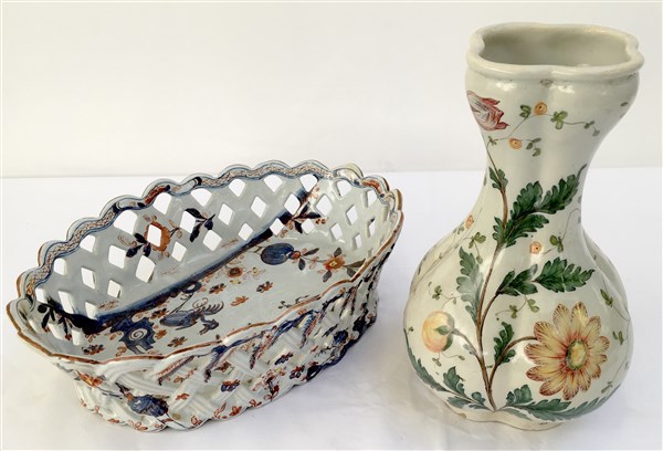 Lotto composto da un centrotavola ed un vaso in maiolica in stile antico (lievi difetti e restauri)