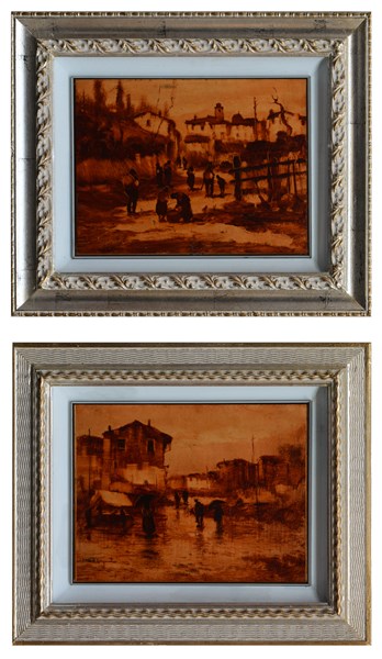 "Cassino" 1930" "Frisanco 1929" coppia di monotipi su carta (cm 24x32) Al retro: locati. In cornici