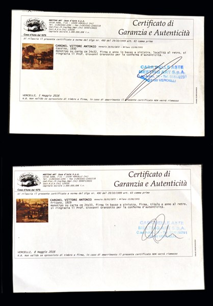 Vittore Antonio Cargnel "Cassino" 1930" "Frisanco 1929" coppia di monotipi su ca