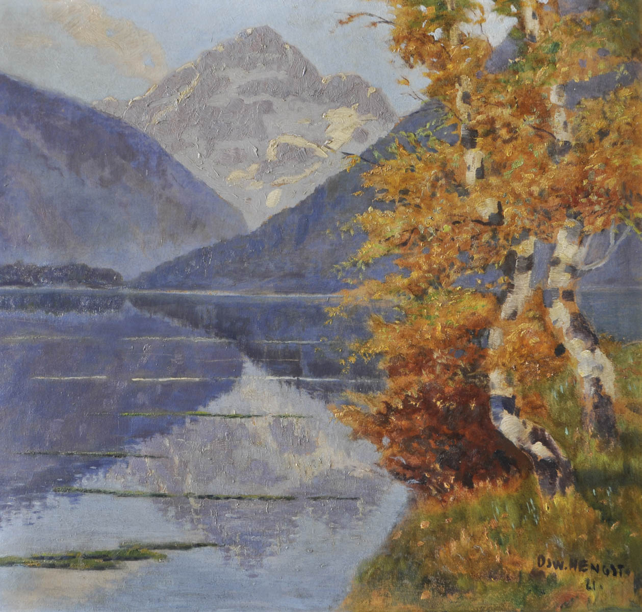 Oswald Hengst (Chemnitz 1870 – Innsbruck 1938) Lago di montagna, 1921;Olio su...