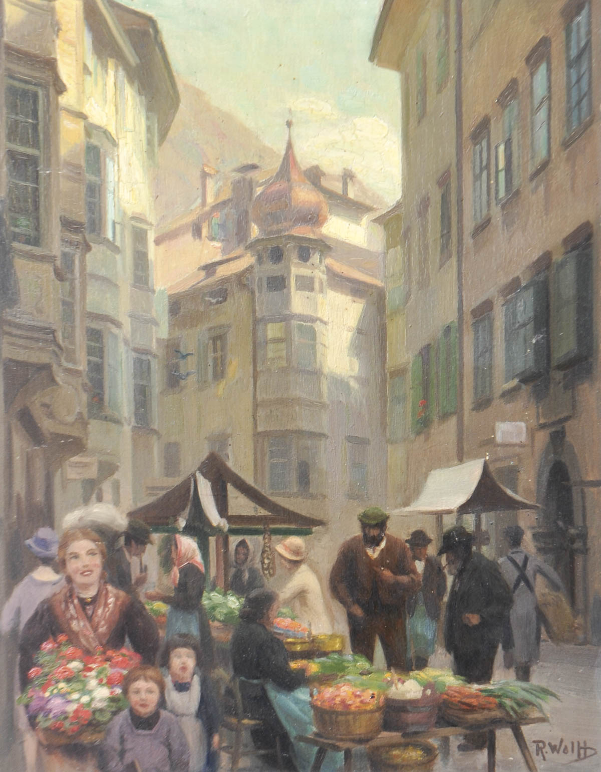 Richard Wolff (Esseg 1880 – Bozen/Bolzano 1964) Piazza delle Erbe;Olio su...