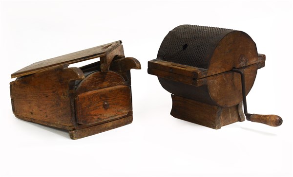 Lotto di due grattugie in legno e ferro, secolo XIX (difetti)