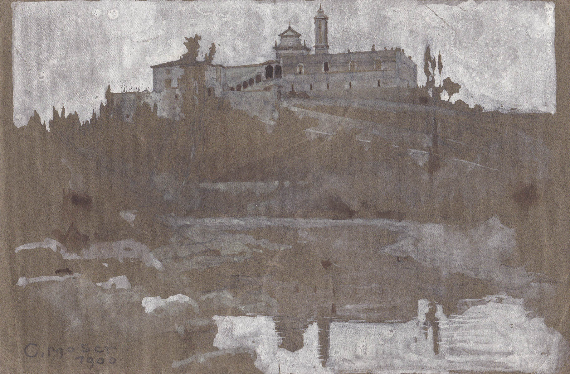 Carl Moser Monastero in Italia, 1900;China acquerellata e biacca su cartoncino,
