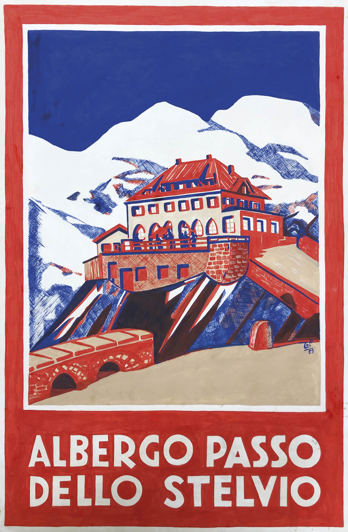 Monogrammist/a G. F. Bozzetto per manifesto “Albergo Passo dello Stelvio“;Tempera su cartone, 99 x 70 cm