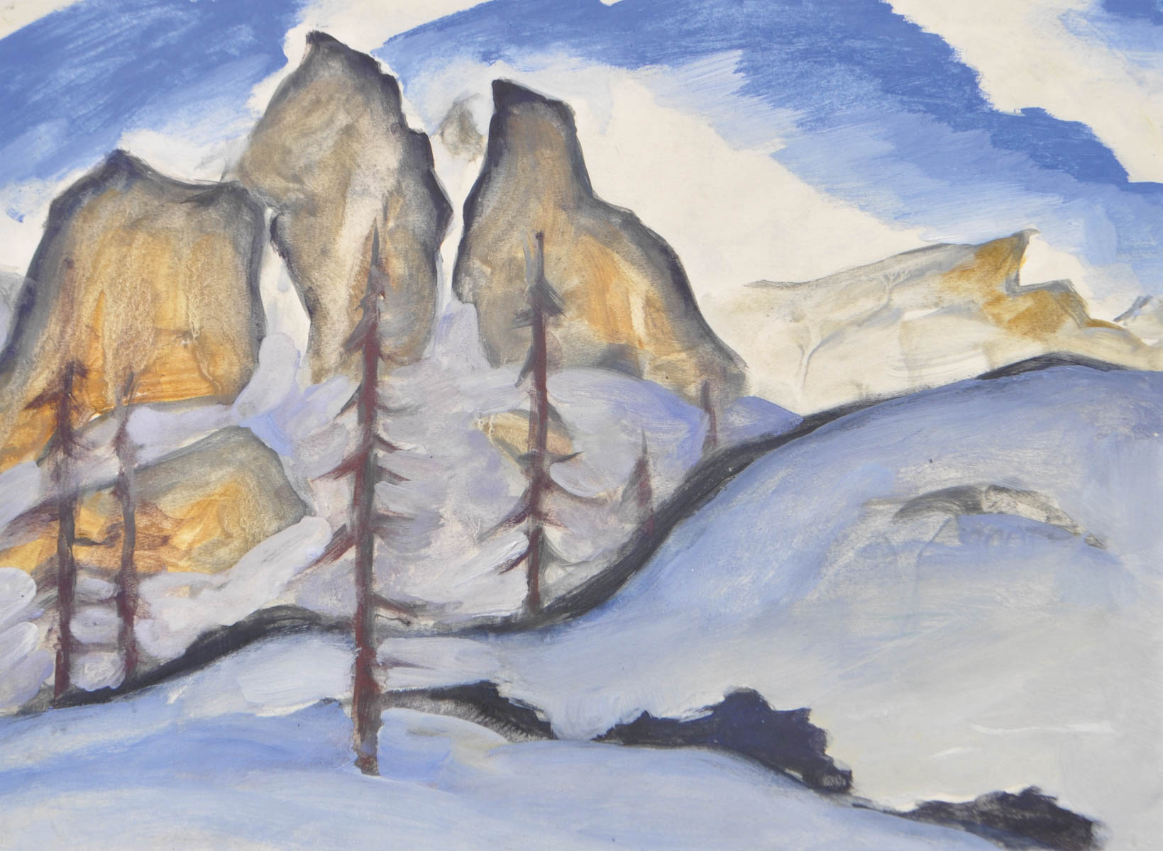 Ernst Nepo (Dauba, Böhmen/Boemia 1895 – Innsbruck 1971) Tre Cime;Tempera, 29 x 39, in cornice