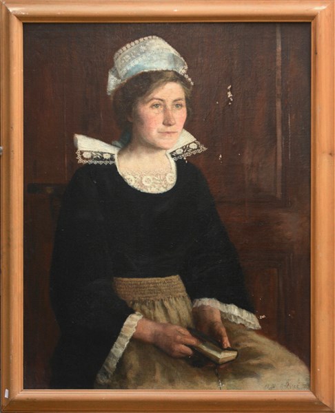 Ignoto "In preghiera" olio su tela (cm 98x76) Tracce di firma e data in basso a destra. (difetti) In cornice