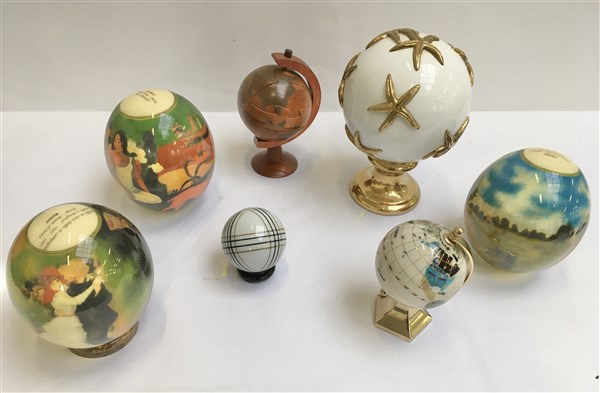 Lotto 993 | Lotto composto da sette tra sfere e mappamondi di materiali e decori differenti