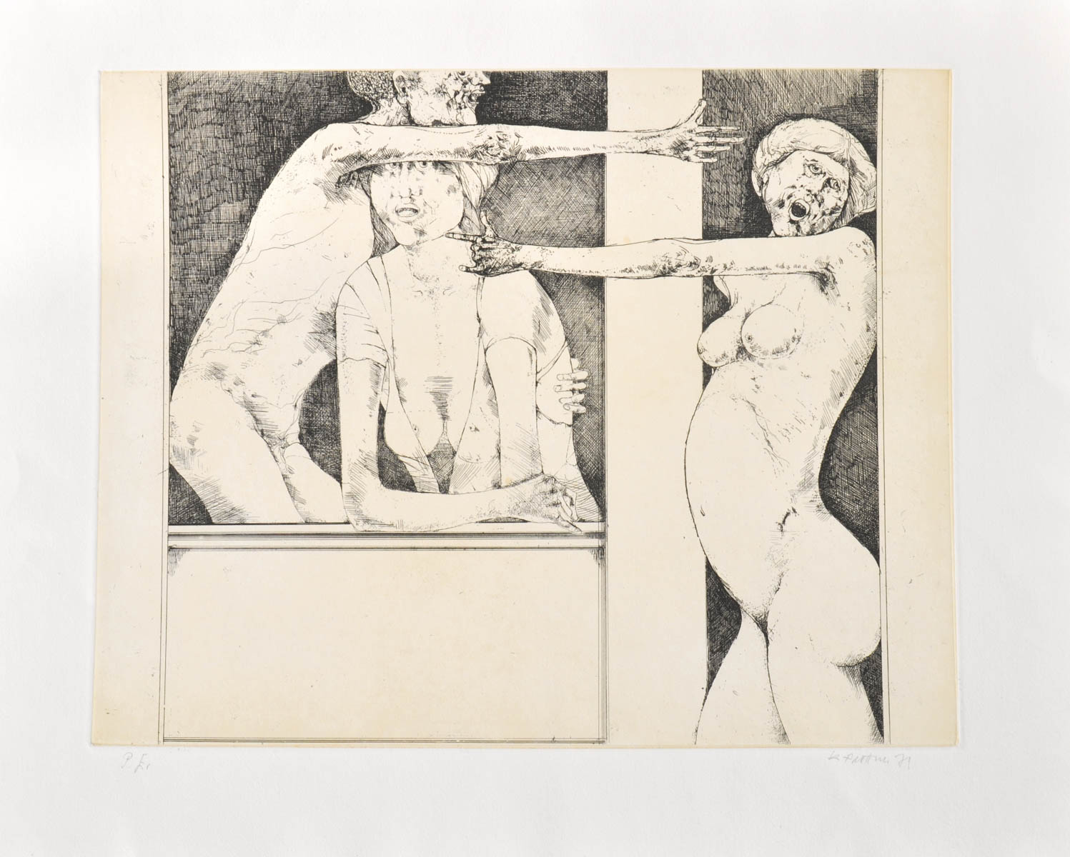 Karl Plattner Il malinteso, 1979;Acquafortee acquatinta, 35,7 x 45,4 cm