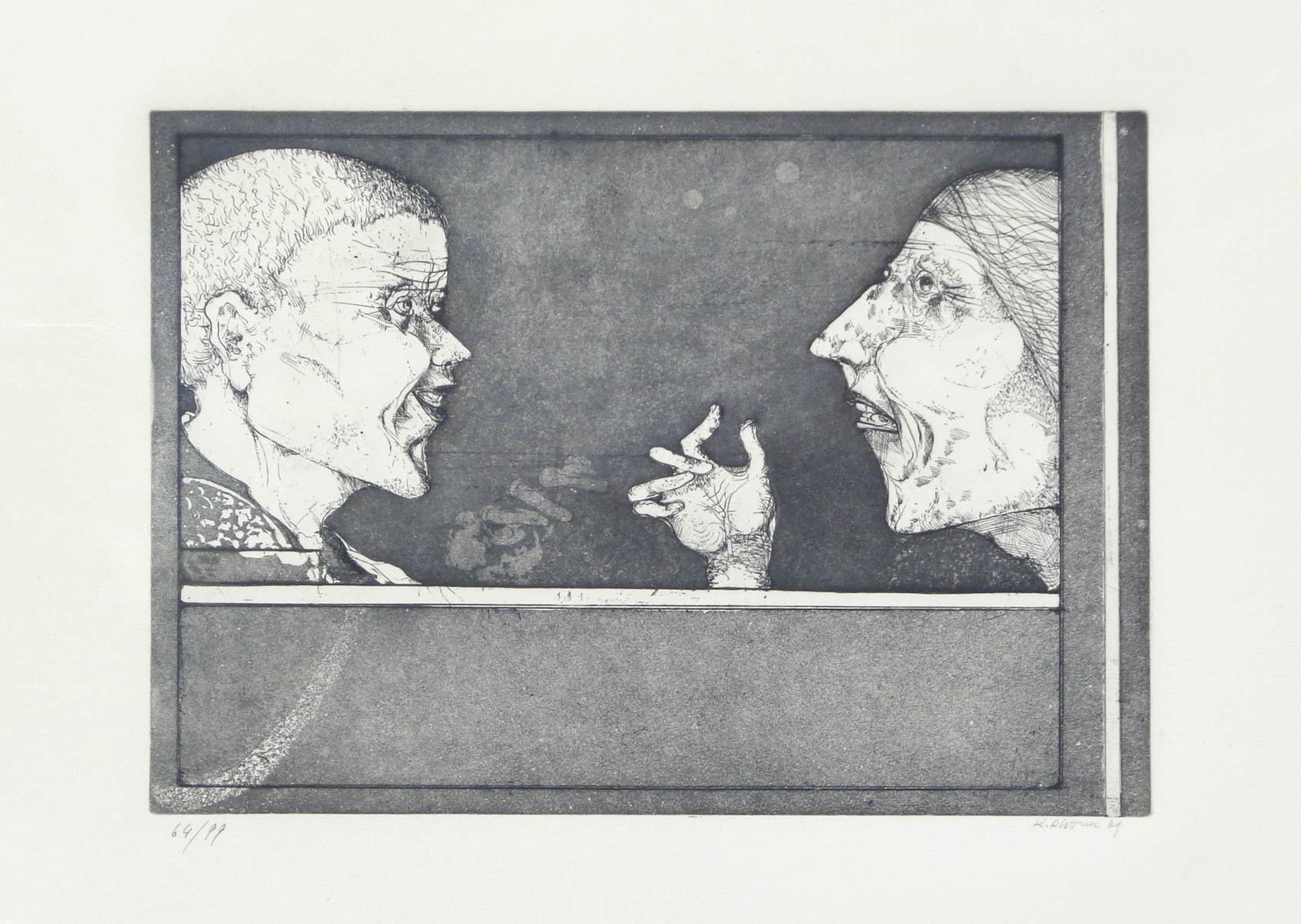 Karl Plattner Conversazione a due, 1969;Acquaforte e acquatinta, 24,6 x 35 cm (lastra), in cornice