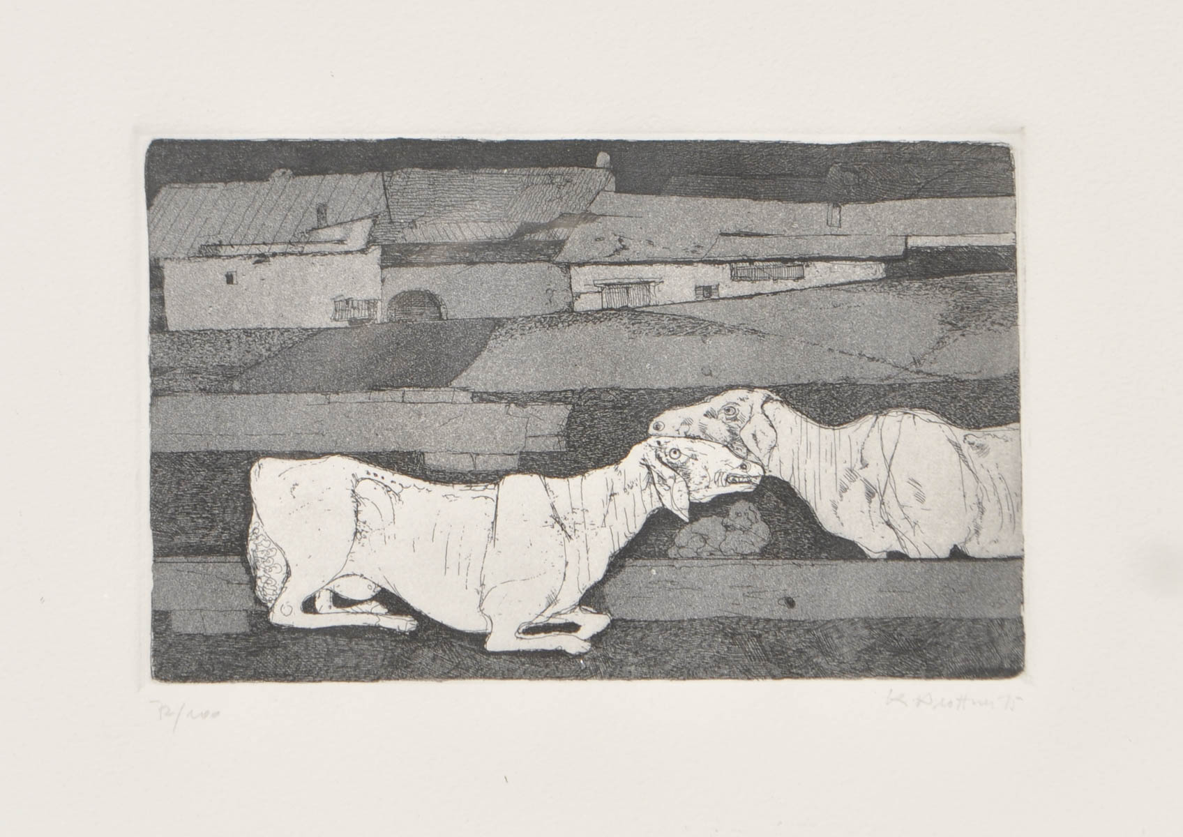 Karl Plattner Pecore in Val Venosta, 1975;Acquaforte e acquatinta, 12,2 x...