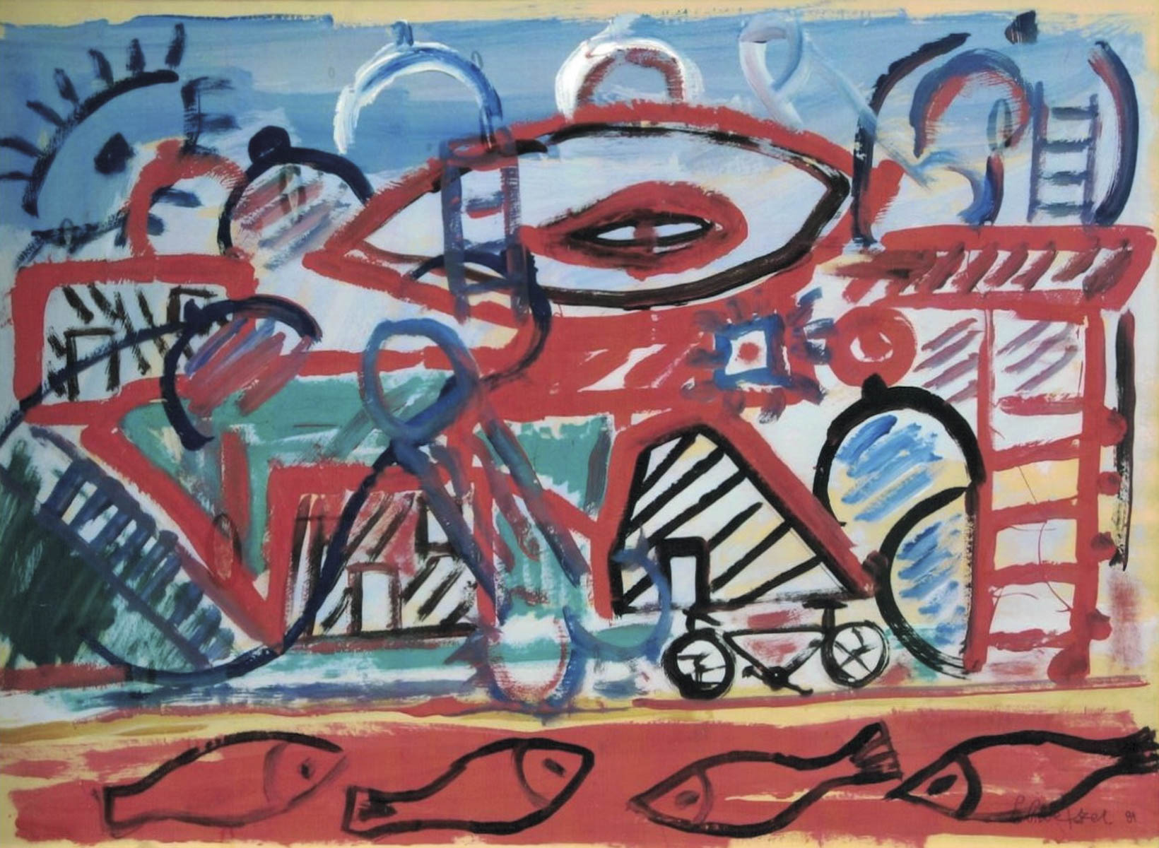 Riccardo Schweizer (Mezzano 1925 – Casez 2004) Composizione, 1981;Tecnica mista su carta intelata, 75 x 102 cm