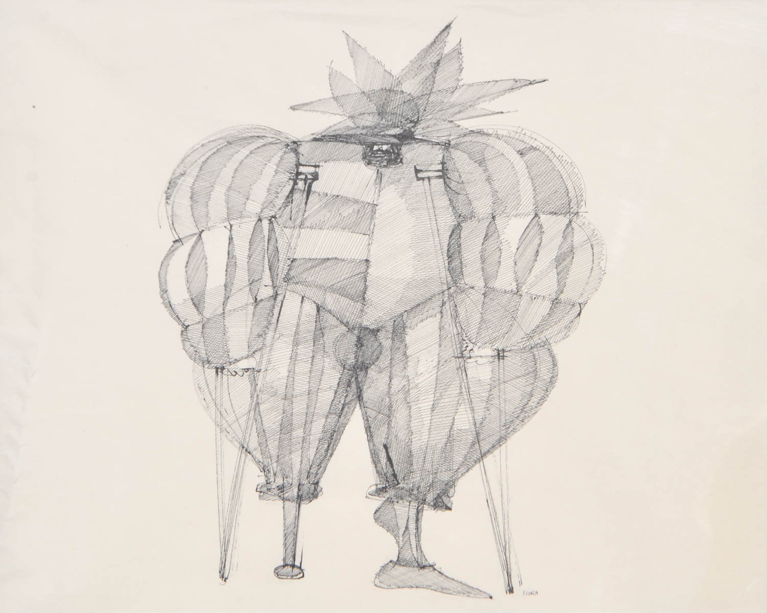 Paul Flora (Glurns/Glorenza 1922 – Innsbruck 2009) Lanzichenecco con una gamba sola;China, 41 x 51,5 cm (entro il passepartout),