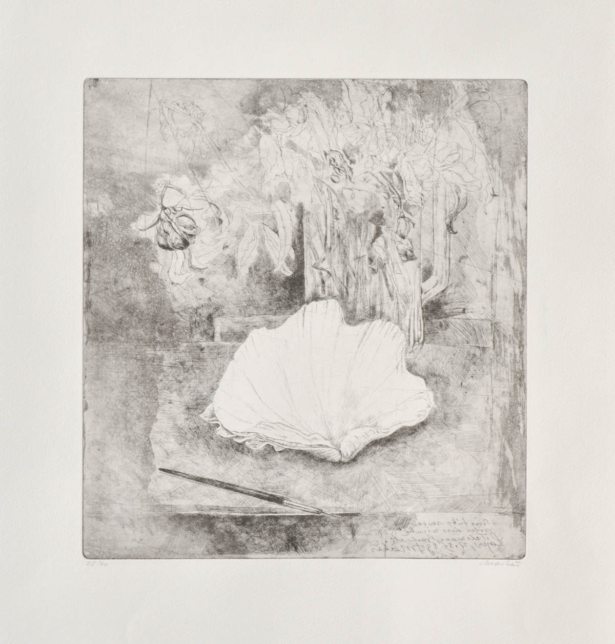 Markus Vallazza Natura morta con conchiglia, 1983;Acquaforte, 35 x 33 cm