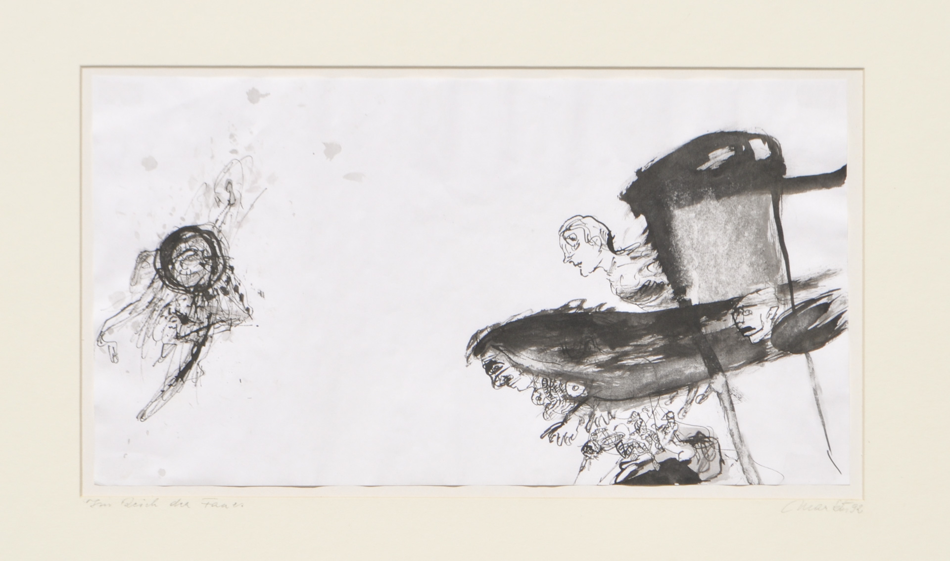 Markus Vallazza Il regno dei Fanes, 1992;China acquerellata, 22,2 x 41,5 cm, in cornice