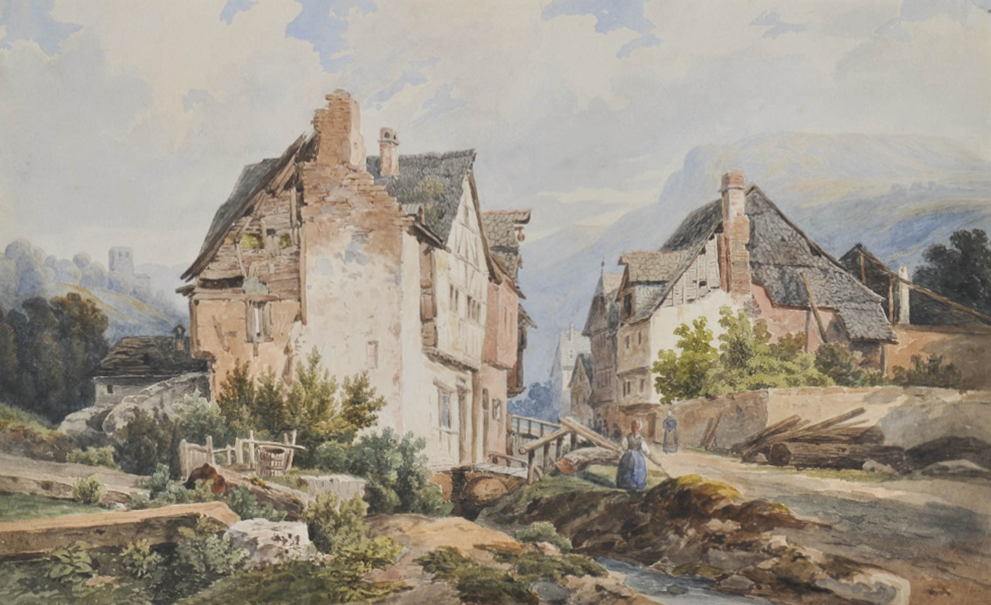 Maler um 1870/Pittore del 1870 ca. Vecchie case a graticcio;Acquerello, 30 x 40 cm ca.