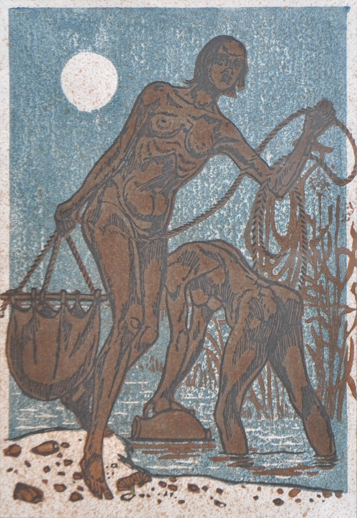 Rudolf Lanzinger (Brixen/Bressanone 1913 – Bruneck/Brunico 1989) Africa;Xilografia a colori, 26,5 x 18,5 cm, in