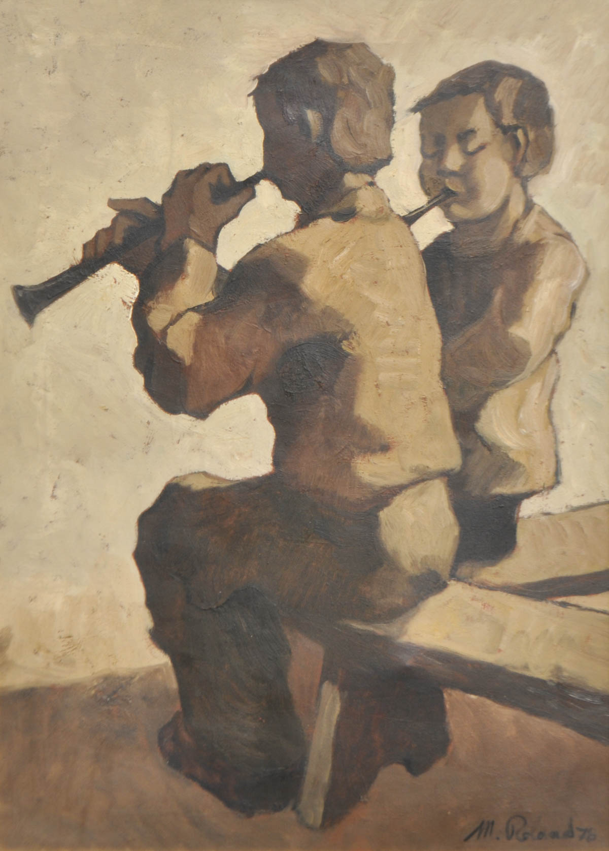 Roland Moroder (* St. Ulrich in Gröden/Ortisei 1948) Due ragazzi che suonano il flauto, 1978;