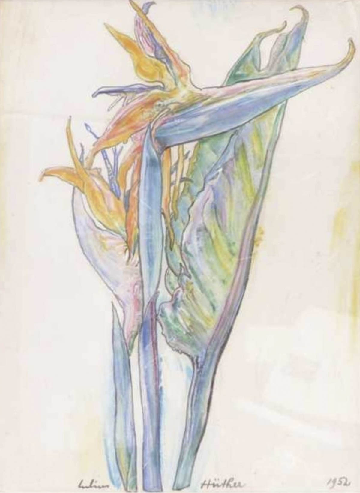 Julius Huther (Bad Cannstatt 1881 – München 1954) Strelitzia, 1952;Tecnica mista su foglio 68 x 55 cm