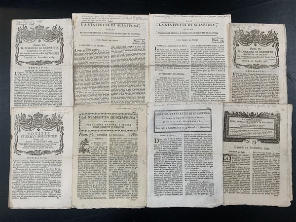[AEROSTATICA] LUNARDI Vincenzo (1754-1806) Lotto contenente una serie di notizie degli anni 1784-1791 sulle prime esperienze di volo. Provenienza: Libreria editrice Lombarda.