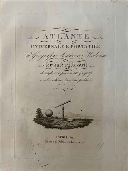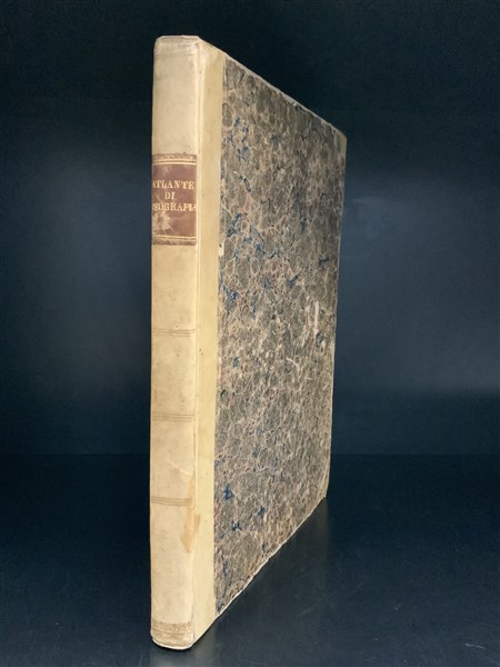 [ATLANTE] Atlante universale e portatile di geografia antica e moderna formato sulle carte de migliori e piu recenti geografi e sulle ultime divisioni politiche. Napoli: presso il Gabinetto Letterario, 1817. 4to, frontespizio inciso in rame e 32 tavole numerate con coloritura nei contorni. Mezza pergamena coeva, piatti in carta marmorizzata