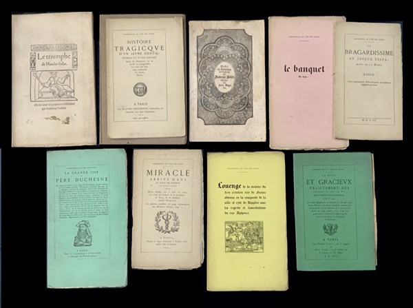 [BIBLIOFILIA] piccolo lotto di opuscoli principalmente a cura del "Portefeuille de l'ami des livres" che riproducono o ristampano rare opere dei secoli XV e XVI.