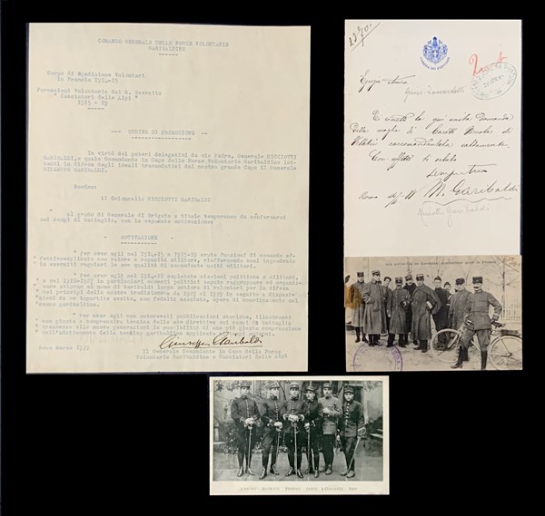 [GARIBALDI FAMIGLIA] - Lotto di 3 autografi dei figli del grande condottiero, Menotti Garibaldi (1840-1903) e Ricciotti Garibaldi (1847-1924) e del nipote, Giuseppe "Peppino" Garibaldi (1879-1950)