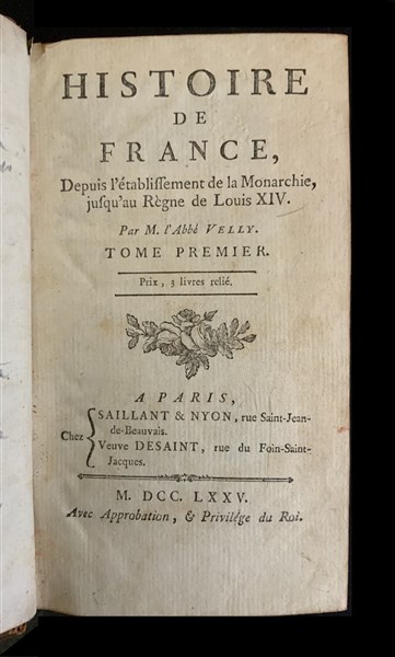 [LEGATURE] VELLY, Abbé. Histoire de France, depuis l'établissement de la monarc