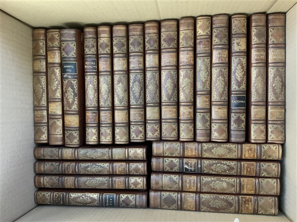 MAUPAUSSANT, Guy. Oeuvres complet. Parigi: Librairie Conard, 1921-1932. 8vo, 29 volumi, mezza pelle, titoli e decori in oro al dorso, buone condizioni. “Édition définitive, bien imprimée sur papier vergé“ (Carteret). Non collazionato e difetti da esaminare.