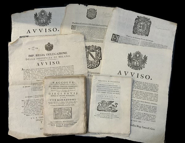 [MILANO - VENEZIA - PROCLAMI ed EDITTI]. Numerosa serie di documenti ed editti dello Stato di Milano e Proclami della Repubblica Veneta