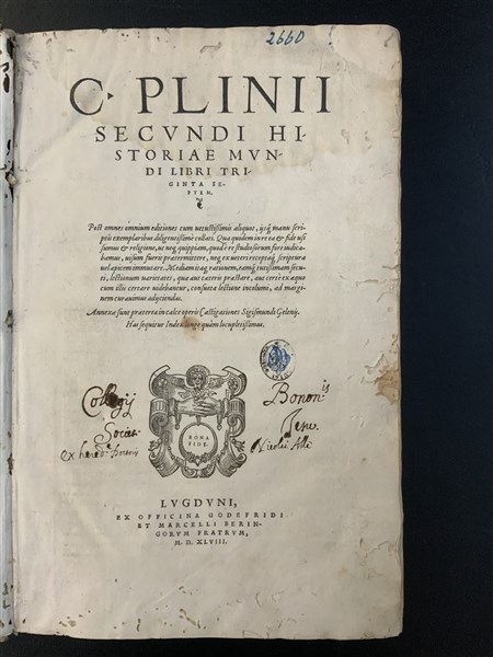 Lotto 1288 | PLINIO IL VECCHIO. Historiae mundi. Lione: Beringen, 1548. Folio (segni di tarl