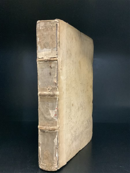 PLINIO IL VECCHIO. Historiae mundi. Lione: Beringen, 1548. Folio (segni di tarlo ai margini del frontespizio e delle prime/ultime carte) Legatura coeva in piena pergamena (mancanze e fori di tarlo) Provenienza: Antiche note di possesso coeve al frontespizio e alle sguardie, qualche breve nota marginale; ex Libris Gino, Anna Pomini; timbro al frontespizio cancellato del Collegio San Luigi di Bologna (cessione). Non collazionato e difetti da esaminare.