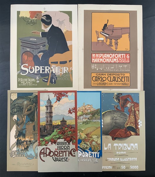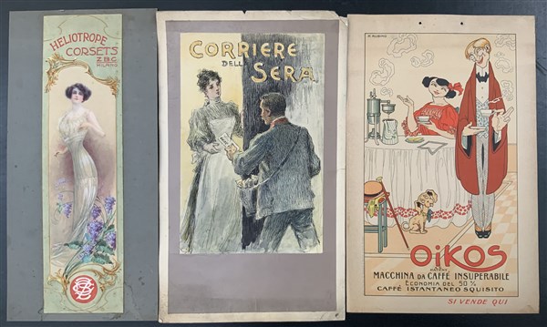 [PUBBLICITA']. Lotto contenente 9 manifesti pubblicitari di piccolo formato alcuni stampati e altri eseguiti a mano. Fra gli autori Rubino