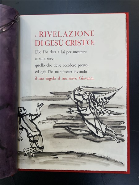 ROSSANO P; FABBRI A. Apocalisse di San Giovani Evangelista. Torino: Istituto di Scienze ed Arti Grafiche, 1965. Folio, Numerose illustrazioni, legatura editoriale in pelle con titolo impresso al piatto e al dorso entro cofanetto marmorizzato. Non collazionato e difetti da esaminare.