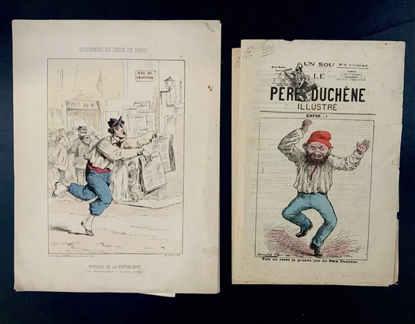 [SATIRA] - J. PLATIER. Lotto contentente una serie di documenti illustrati a carattere umoristico su 14 grandi fogli. Nel lotto anche una serie di numeri di "Le Charivari", quotidiano politico letterario francese del 1838 di carattere umoristico e con diverse illustrazioni nel testo che includono come autore DAUMIER