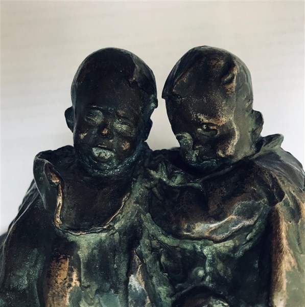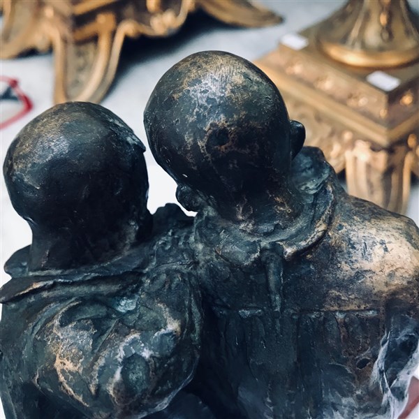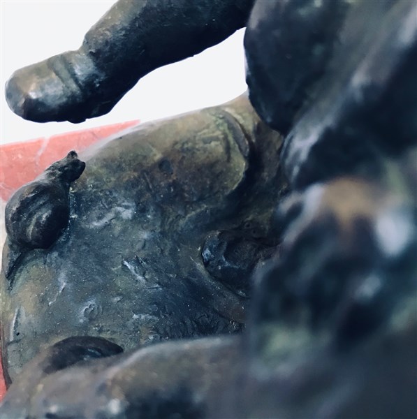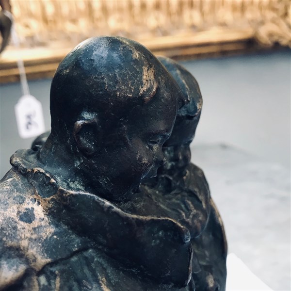 Ignoto del XX Secolo "Due bimbi e la lumaca" scultura in bronzo (h cm 16) poggi